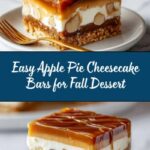 These Apple Pie Cheesecake Bars combine the best of both worlds: a buttery graham cracker crust, creamy cheesecake filling, and tender apple chunks spiced with cinnamon. Topped with a drizzle of caramel sauce and a sprinkle of sea salt, these bars are a decadent treat perfect for dessert lovers seeking a cozy, fall-inspired flavor in every bite.