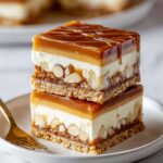 - Top and Serve: Before serving, drizzle the bars generously with store-bought caramel sauce and sprinkle lightly with sea salt to enhance the sweet and savory flavors.