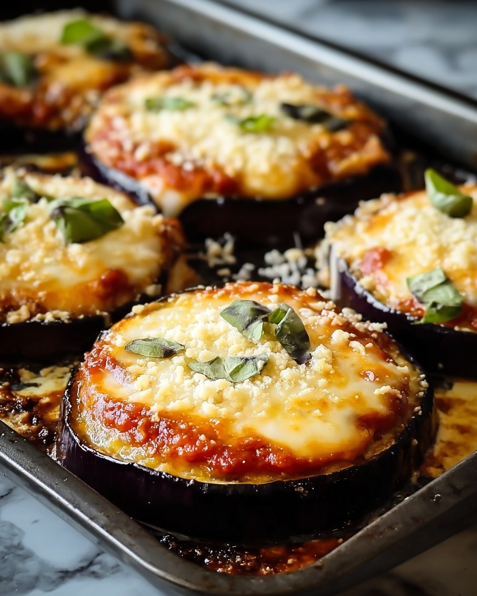 Start by laying your sliced eggplant on a baking sheet lined with paper towels or a clean kitchen towel and sprinkle salt generously on both sides. This step is key—it draws out excess moisture and any bitterness, helping you achieve a rich and firm texture in your final dish. Let them sweat for about 30 minutes, then pat dry thoroughly with paper towels to remove the liquid and residual salt.