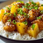 This Baked Pineapple Chicken Bowl recipe combines tender chunks of chicken coated in a crispy cornstarch and egg batter, cooked to a golden finish, and baked in a sweet and tangy pineapple sauce. Enhanced with garlic, ginger, and optional Sriracha for a hint of heat, this dish offers a delightful balance of flavors perfect for a family meal or weeknight dinner.