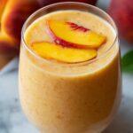 4. Serve: Pour the smoothie into glasses. Add optional toppings like whipped cream, fresh peach slices, or banana slices for extra flair.