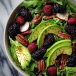 This refreshing Blackberry & Avocado Salad features a vibrant mix of fresh greens, juicy blackberries, creamy avocado, and crunchy toasted nuts, all brought together with a bright and sweet honey lemon vinaigrette. Perfect as a light meal or a flavorful side dish, this salad balances sweet, tangy, and savory elements for a delightful burst of taste and texture.