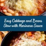 A wholesome and comforting cabbage and beans recipe featuring tender boiled cabbage combined with hearty cannellini beans and rich marinara sauce, simmered to perfection and optionally garnished with Romano cheese and crushed red pepper flakes for a flavorful meal.