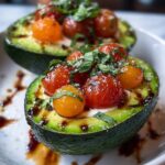 This fresh and vibrant Caprese Stuffed Avocado recipe combines ripe avocados with juicy tomatoes, creamy mozzarella, and fragrant basil, all drizzled with olive oil and balsamic glaze. It’s a quick, no-cook dish perfect for a healthy snack or light meal, bursting with Mediterranean flavors and creamy textures.