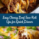 These Cheesy Beef Taco Roll Ups are a delicious and easy-to-make twist on classic tacos. Ground beef seasoned with taco spices is rolled inside flour tortillas with melted cheddar cheese, then baked to golden perfection. Perfect for a quick weeknight meal or game day snack, served with optional sour cream and guacamole for added flavor.
