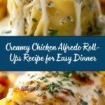 Serve each roll-up on its own plate with a drizzle of extra Alfredo sauce around for a restaurant-style finish. For gatherings, a big platter lined with warm garlic breadsticks and colorful veggies can turn this Chicken Alfredo Roll-Ups Recipe into a convivial feast everyone can help themselves to. You could even turn leftovers into a hearty lasagna bake the next day by layering the roll-ups with more sauce and cheese before baking again.