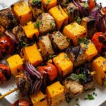 Delicious and colorful Chicken and Sweet Potato Kebabs featuring tender marinated chicken cubes, lightly boiled sweet potatoes, and vibrant bell peppers and onions. These kebabs are grilled or roasted to perfection, creating a flavorful and healthy meal that’s perfect for a quick dinner or weekend cookout.