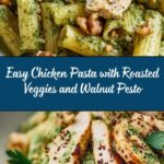 - Combine the Ingredients: In a large bowl, mix the cooked pasta, shredded chicken, roasted vegetables, and halved cherry tomatoes. Toss everything with the parsley-walnut pesto until all ingredients are well coated.