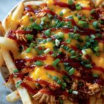 Presentation is part of the fun! Try serving your Chicken Loaded Fries Recipe in a cast-iron skillet for a rustic look, or on a large wooden board for a shareable platter that’s perfect for casual parties. For a fun twist, separate the ingredients and let guests build their own loaded fries.