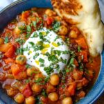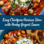 A flavorful and comforting Chickpea, Tomato, and Harissa Stew served with a refreshing Herby Yogurt. This hearty vegan stew combines smoky spices, harissa heat, and tender chickpeas, balanced perfectly with a tangy, herb-infused yogurt sauce, making it a perfect meal for any day of the week.