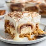 This Cinnamon Roll Poke Cake combines the ease of a boxed vanilla cake mix with rich cinnamon-infused filling and creamy cream cheese frosting, resulting in a moist, flavorful dessert reminiscent of classic cinnamon rolls but in a simple poke cake form.