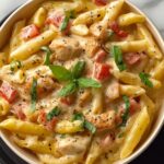 This Creamy Italian Chicken Pasta is a comforting and flavorful dish featuring tender chicken breasts, sautéed garlic, sun-dried tomatoes, and fresh spinach all tossed in a rich Parmesan cream sauce. Served over your favorite pasta, it’s a perfect weeknight dinner that combines Italian seasoning with a hint of spice from red pepper flakes and the freshness of basil garnish.