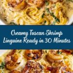 This Creamy Tuscan Shrimp Linguine is the ultimate indulgence for seafood and pasta lovers. Featuring succulent shrimp cooked to perfection and enveloped in a rich, garlicky cream sauce with fresh spinach and cherry tomatoes, this Italian-American classic is both comforting and luxurious. Ready in just 30 minutes, it’s perfect for a weeknight dinner or a special occasion.
