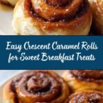 Delightfully gooey and sweet, these Crescent Caramel Rolls combine flaky crescent roll dough with a luscious caramel pecan topping and a cinnamon sugar swirl. Perfect for a crowd or special breakfast treat, these rolls bake quickly to a golden perfection and are served warm with a rich caramel sauce.