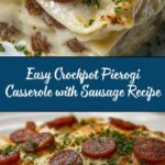 This Crockpot Pierogi Casserole with Sausage is an easy, comforting dish perfect for busy days. Layers of frozen pierogies, smoked sausage, and onions are topped with a creamy mixture of cream cheese, sour cream, and broth, then slow-cooked to bubbly perfection. Garnished with fresh herbs, it’s a hearty meal with minimal prep and maximum flavor.