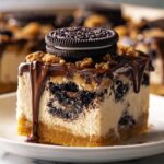 These Decadent Oreo Cheesecake Cookie Bars combine a rich, creamy cheesecake layer with a soft, buttery Oreo cookie base. Perfectly swirled together and baked to golden perfection, these bars offer the ultimate indulgence for Oreo and cheesecake lovers alike, making a delightful treat for parties, dessert tables, or any sweet craving.