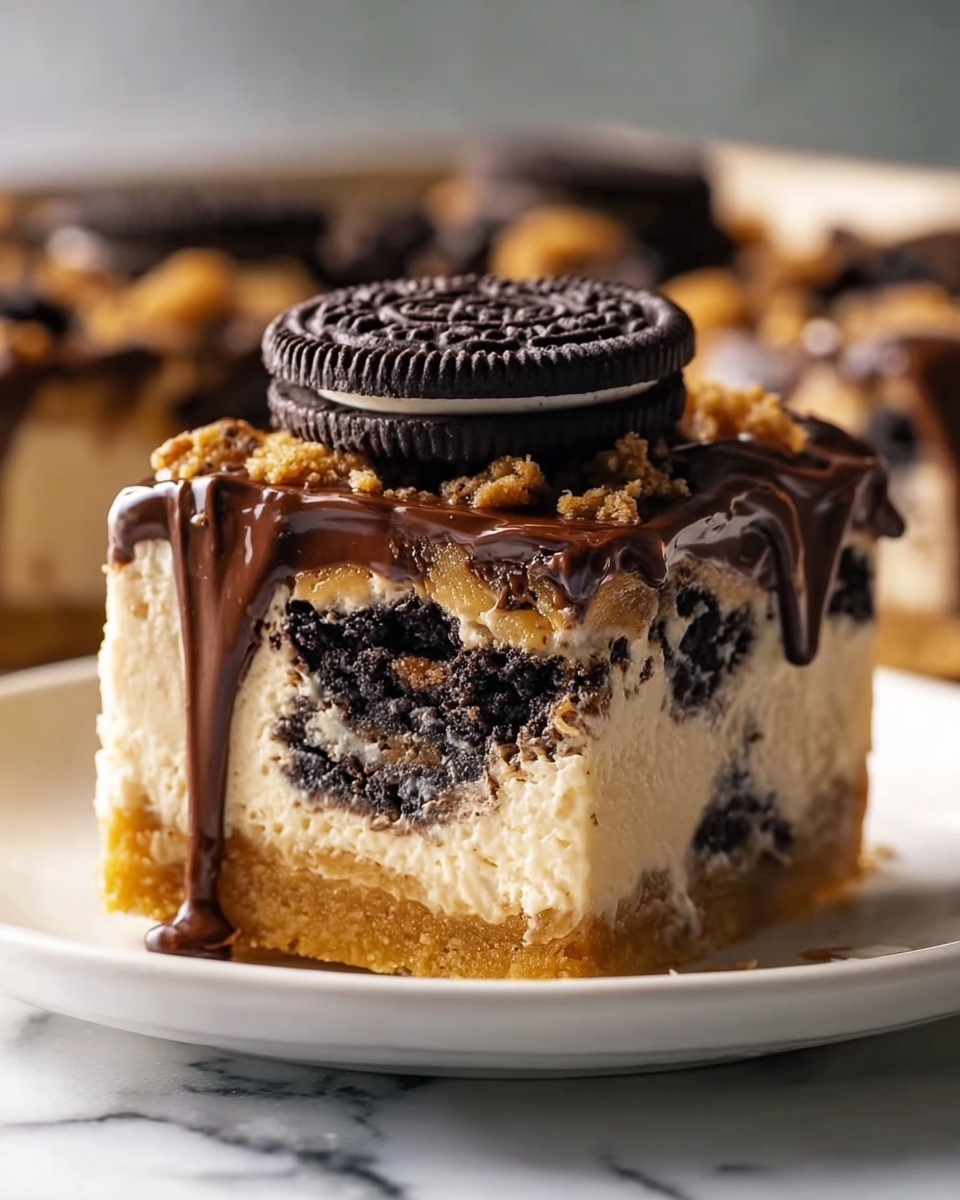 If you want to serve your bars warm, heat individual pieces in the microwave for about 10–15 seconds until soft but not hot—this brings out the luscious cream cheese flavor and slightly melts the chocolatey Oreos inside. Avoid reheating for too long to preserve the moist, tender texture that makes this Decadent Oreo Cheesecake Cookie Bars Recipe so irresistible.