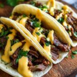 Warm your soft tortillas either in a skillet or microwave until they’re warm and pliable. Spoon a generous amount of beef mixture onto each tortilla, then drizzle the creamy taco sauce over the top. Sprinkle with shredded cheddar cheese for that irresistible melty finish, and if you love fresh herbs, add some chopped cilantro to brighten every bite. Fold and serve your Garlic Butter Honey BBQ Beef Tacos fresh for the best experience.