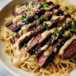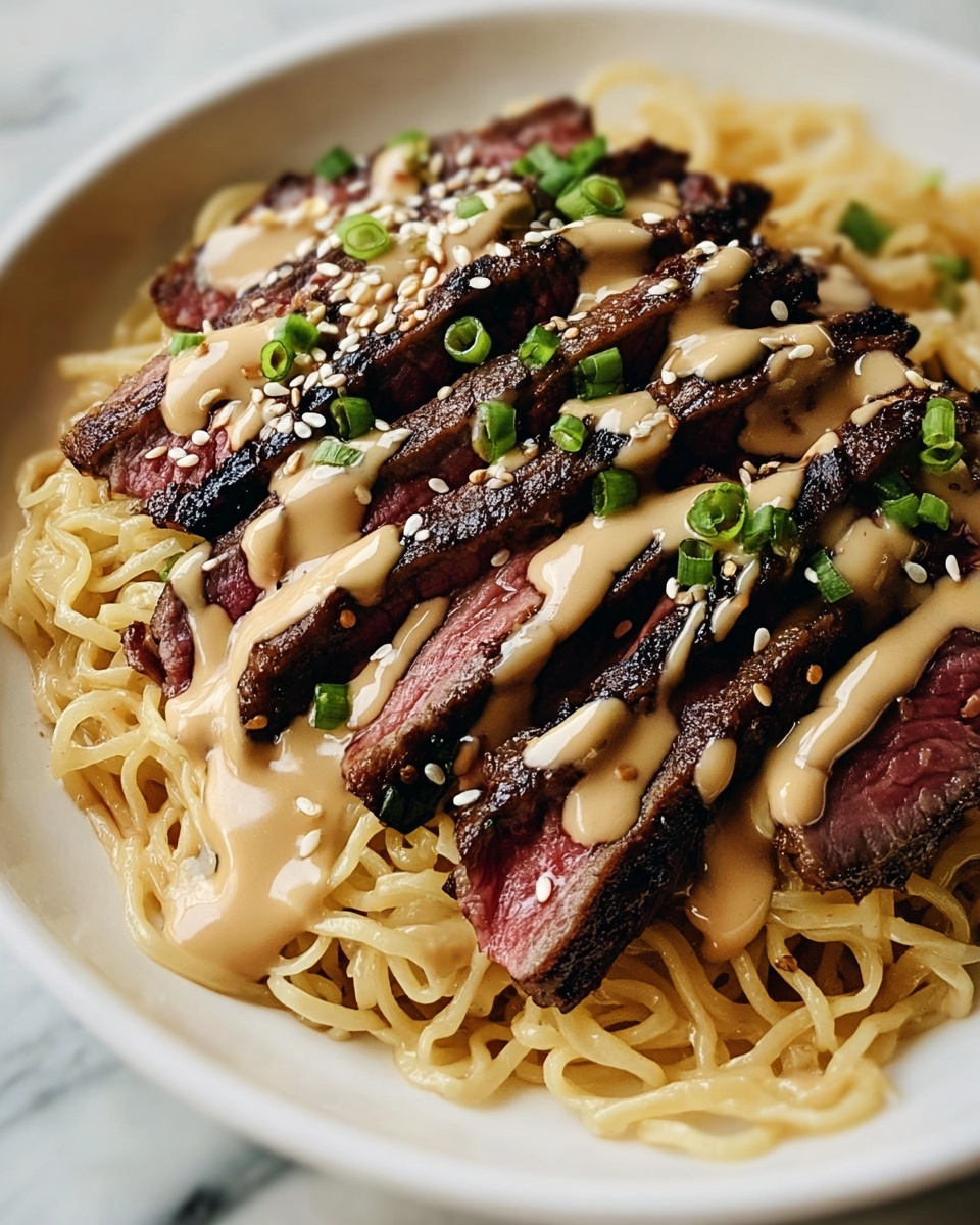 Think beyond the bowl: swirl the noodles into a neat nest on your plate, then crown with steak slices like a chef’s signature. Serve in rustic cast-iron skillets to keep the dish warm and give a cozy feel. Alternatively, presentation in a wide pasta bowl with scattered fresh herbs makes this dish a feast for both eyes and palate, an impressive yet effortless meal.