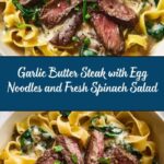 How to Serve Garlic Butter Steak with Egg Noodles and Spinach Salad Recipe