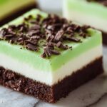- Serve: Cut into 16-20 bars depending on desired size, serve chilled, and enjoy your decadent Grasshopper Cheesecake Bars!