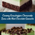 These Grasshopper Cheesecake Bars feature a rich chocolate cookie crust topped with a creamy mint-flavored cheesecake filling, finished with a smooth semi-sweet chocolate ganache. Perfect for mint and chocolate lovers, these bars offer a delightful combination of cool, creamy, and decadent flavors in every bite.