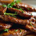 This Grill Pan Honey Glazed Steak Strips recipe offers a quick and flavorful way to enjoy tender steak with a sweet and savory glaze. Perfect for a weeknight dinner, the thinly sliced steak is seared on a grill pan and then coated in a luscious honey-soy sauce infused with garlic. It delivers a delicious caramelized finish in just 20 minutes.