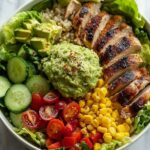 This Grilled Chicken Power Bowl with Guacamole & Veggies is a nutritious and flavorful meal combining perfectly grilled chicken breasts with a vibrant array of fresh vegetables, cooked quinoa, and creamy homemade guacamole. It’s a wholesome bowl packed with protein, fiber, and healthy fats, ideal for a balanced lunch or dinner.