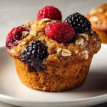 These Healthy Berry Oatmeal Protein Muffins are a delicious and nutritious option perfect for breakfast or a snack. Packed with whole grains, protein powder, and fresh or frozen mixed berries, they offer a balanced combination of fiber, protein, and natural sweetness without excess sugar. Made with wholesome ingredients like rolled oats, whole wheat flour, Greek yogurt, and applesauce, these muffins are moist, fluffy, and easy to prepare in just 30 minutes.