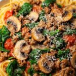 A hearty and flavorful Italian Sausage Pasta made with savory Italian sausage, sautéed mushrooms, fresh spinach, and a rich marinara sauce, all tossed with your choice of pasta. This comforting dish comes together quickly, making it perfect for a satisfying weeknight dinner.