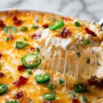Adding fresh garnishes elevates the dish visually and introduces complementary flavors. Diced green onions or finely chopped fresh cilantro bring freshness and a hint of crispness to the rich, creamy dip. You can also add a sprinkling of smoked paprika or a few extra pickled jalapeño slices on top for some bright color and added zing.