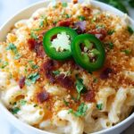 Jalapeño Popper Mac and Cheese is a creamy, spicy twist on the classic comfort dish, featuring tender elbow macaroni smothered in a rich cheese sauce with sharp cheddar, mozzarella, cream cheese, and a hint of heat from fresh jalapeños. Crisp bacon and a crunchy panko topping complete this crowd-pleasing recipe that’s perfect for gatherings or a hearty family meal.