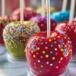 Elevate these candy apples with edible glitter for a magical sparkle that catches the light, or drizzle melted white or dark chocolate in thin, elegant lines for a sophisticated look. You can also add a sprinkle of crushed nuts, colorful sprinkles, or shredded coconut to add wonderful texture contrast and visual appeal that will impress your guests.