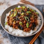 This Korean-Style Ground Turkey Bowl is a quick and flavorful weeknight meal featuring ground turkey sautéed with garlic, ginger, and a savory-sweet soy sauce glaze. Topped with green onions and sesame seeds, this dish is perfect served over a bed of warm cooked rice for a comforting and satisfying dinner.