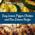 A vibrant and flavorful Lemon Pepper Chicken and Rice dish featuring tender, juicy chicken breasts seasoned with lemon pepper and herbs, served over fluffy white rice with sautéed zucchini and yellow squash. This wholesome, one-pan meal combines bright citrus notes with savory spices for a comforting yet light dinner option.