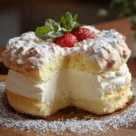 This Light & Fluffy Yogurt Cloud Cake is a delightful 7-layer recipe featuring a tender, airy texture achieved by folding whipped egg whites into a yogurt-based batter. Perfect for any occasion, this cake combines the tanginess of yogurt with the subtle sweetness of vanilla and sugar, resulting in a moist and flavorful treat that’s lightly dusted with powdered sugar and optionally garnished with fresh fruits.