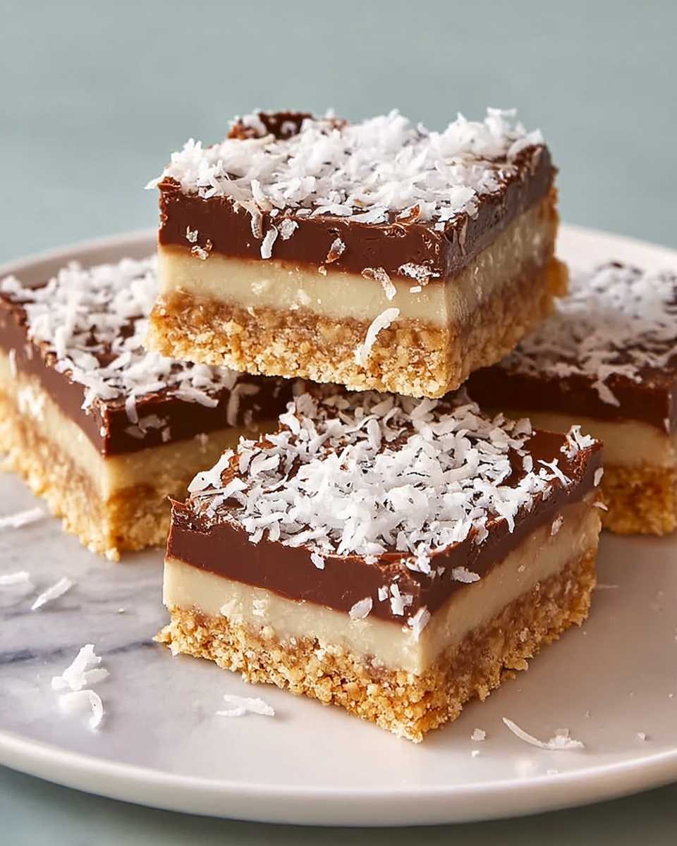 To enjoy the bars just-baked warm, gently reheat them in the microwave for about 15-20 seconds or in a low-temperature oven until soft. This brings back that melty chocolate goodness and chewy coconut texture every time.