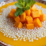 A refreshing Asian dessert featuring chewy tapioca pearls soaked in creamy coconut milk, sweetened lightly and topped with fresh ripe mango cubes for a perfect balance of texture and tropical flavor.