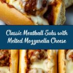 Classic homemade Meatball Subs featuring juicy beef meatballs simmered in savory marinara sauce, topped with melted mozzarella and Parmesan cheese, served in soft hoagie rolls. Perfect for a comforting and hearty meal.