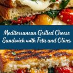 A delicious Mediterranean Grilled Cheese Sandwich combining creamy feta and gooey mozzarella with briny kalamata olives, fresh tomatoes, and fragrant basil, all grilled to golden perfection on hearty sourdough bread.
