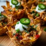 - Bake Until Cheese Melts: Return the filled wonton cups to the oven and bake for another 5–6 minutes until the cheese is melted and bubbly.