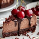 This No-Bake Cherry Chocolate Cheesecake is a luscious dessert combining a rich chocolate graham cracker crust with a smooth, creamy chocolate cheesecake filling. Topped with sweet cherry pie filling, it’s the perfect indulgent treat that requires no oven time, making it easy and convenient to prepare ahead for any occasion.