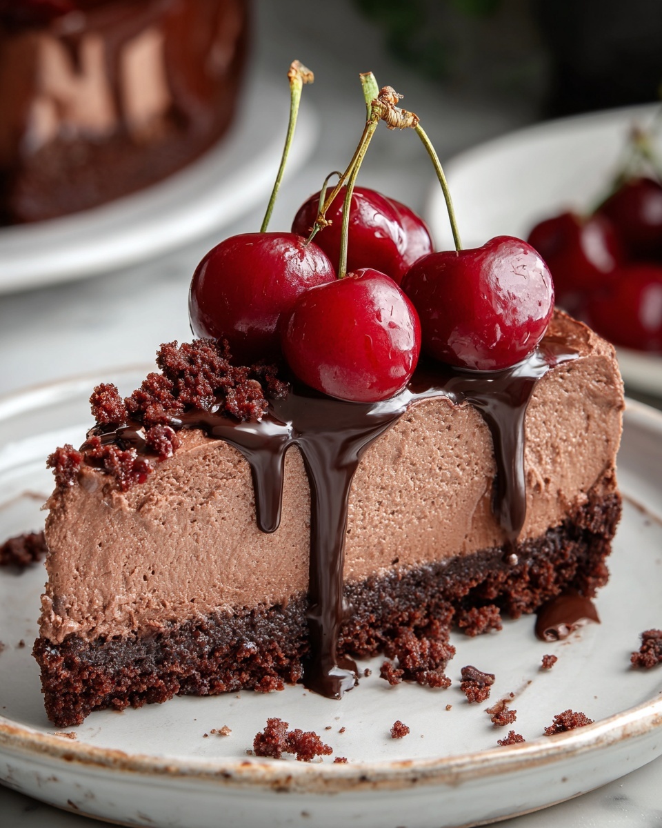 This cheesecake pairs wonderfully with a cup of freshly brewed coffee or a rich espresso, which balances the sweetness and enhances the chocolate notes. For an extra touch, serve alongside a scoop of vanilla bean ice cream or a fresh fruit salad featuring berries to keep the palate fresh and lively.