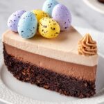 While the mini eggs on top are the star garnish here, consider adding a light dusting of cocoa powder or a drizzle of melted chocolate for extra flair. Fresh mint leaves can also brighten the look and add a refreshing aroma that complements the rich flavors.