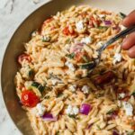 Reheat leftovers in a microwave or on the stovetop with a splash of water or broth to bring back the creamy consistency. Stir gently while warming to keep the feta from clumping and to evenly heat the orzo and vegetables.
