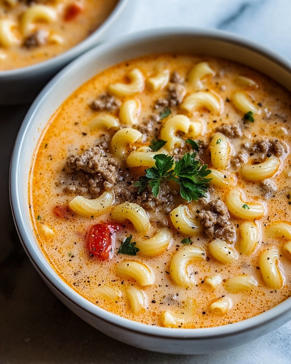 There is something truly magical about the flavors coming together in the One-Pot Macaroni Cheeseburger Soup Recipe—simple ingredients transforming into an irresistible bowl of comfort food. Whether you’re feeding a crowd or craving a cozy weeknight dinner, this soup is guaranteed to bring warmth and smiles around the table. Give it a try and watch it instantly become one of your go-to favorites for its ease, taste, and pure deliciousness.
