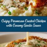 This Parmesan Crusted Chicken with Creamy Garlic Sauce is a flavorful and elegant dish featuring tender chicken cutlets coated in a crispy Parmesan and flour crust, pan-fried to golden perfection, and lovingly smothered in a rich, garlicky cream sauce. Perfect for a quick weeknight dinner or a special occasion, it pairs well with vegetables or a light salad.