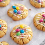 - Press Candies: Gently press a few pastel-colored candy-coated chocolates into the top of each dough ball to adorn the cookies with colorful centers.