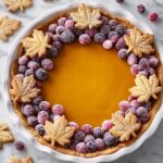 This Butternut Squash Pie recipe features a silky smooth pumpkin-based filling enriched with warm spices and baked in a flaky homemade crust. Topped with decorative pie crust leaves and tangy sugared cranberries, it makes a perfect seasonal dessert for fall and winter gatherings.