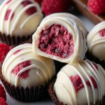 These Raspberry Cheesecake Truffles are a decadent, bite-sized treat perfect for any occasion. Creamy cheesecake filling flavored with vanilla and crushed freeze-dried raspberries is coated in a smooth layer of melted white or dark chocolate, then optionally garnished with graham cracker crumbs and fresh raspberries for an elegant finish.
